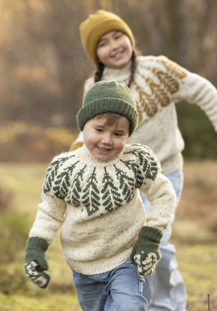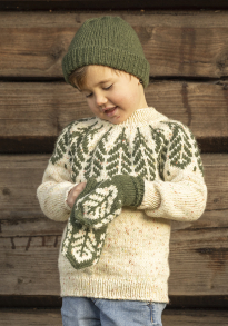 Du kan ändra färg på stickpaketet - välj först den storlek du vill sticka så visas färgvalen nedanför. OBS! Stickmönstret levereras alltid i stickpaketets originalfärg: tuttifrutti print och mörkgrön