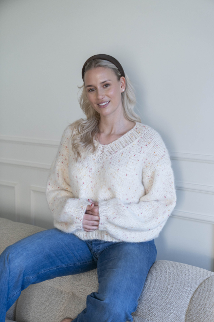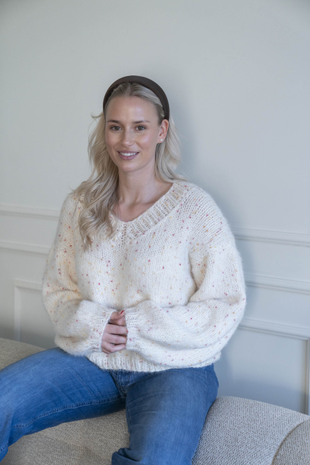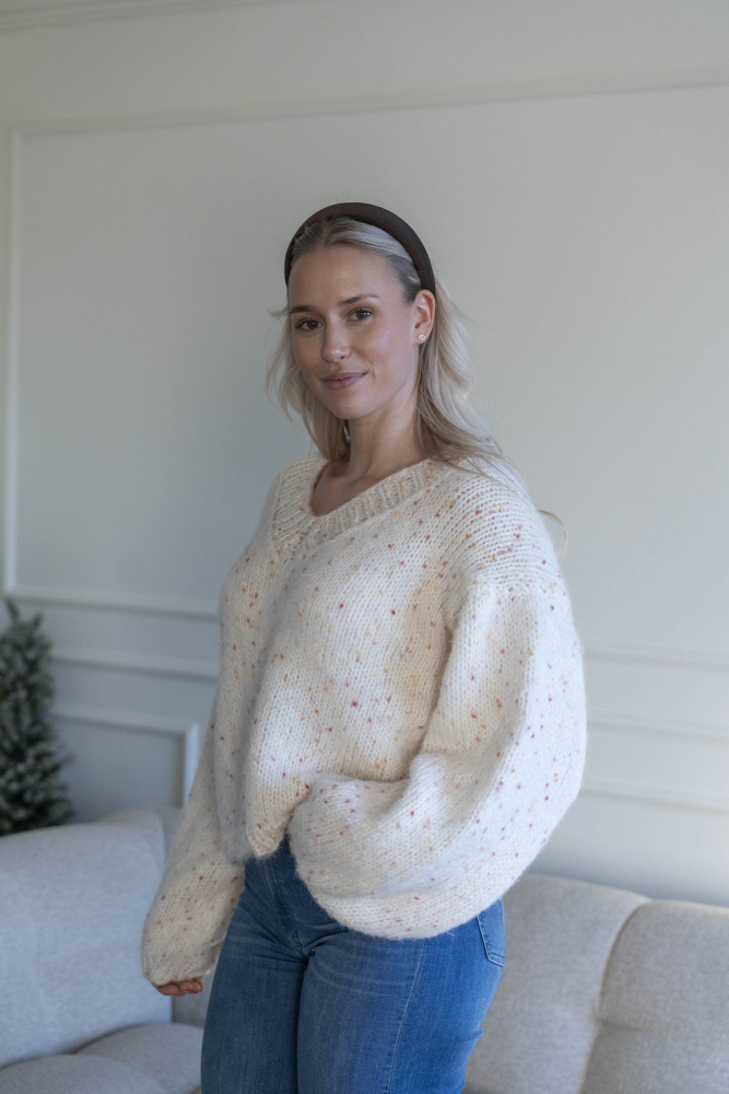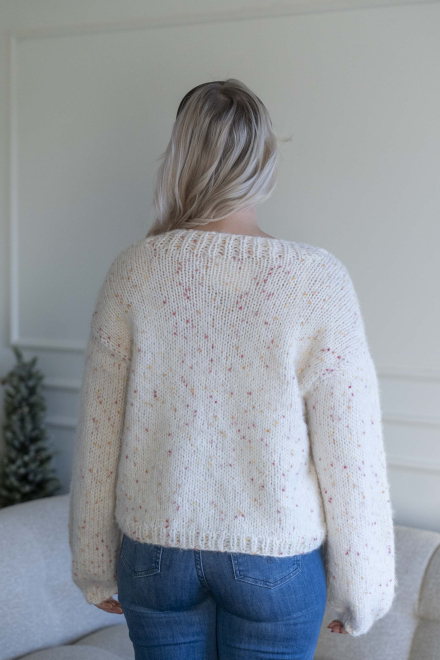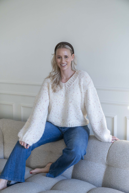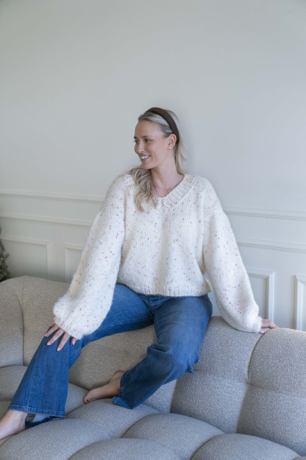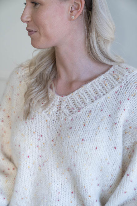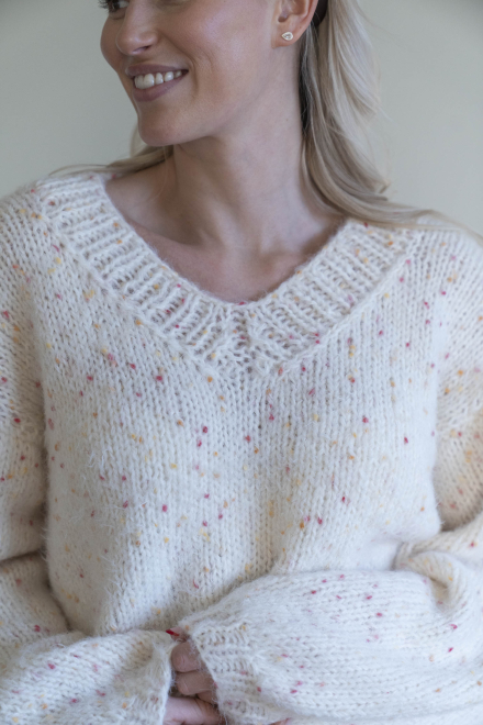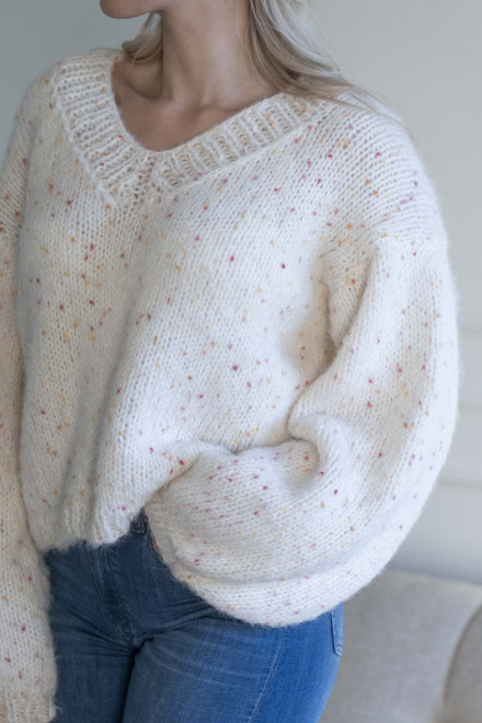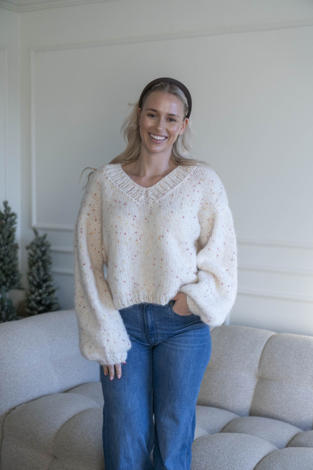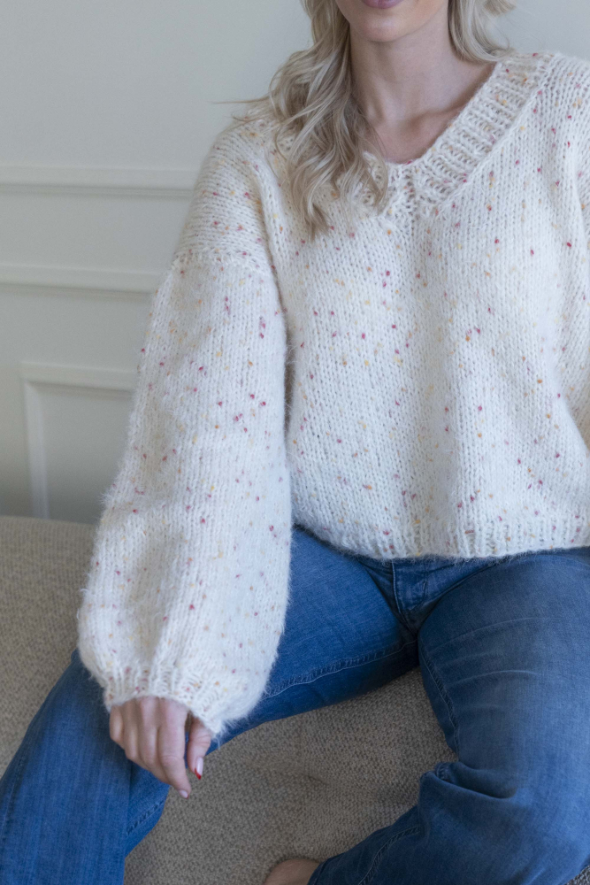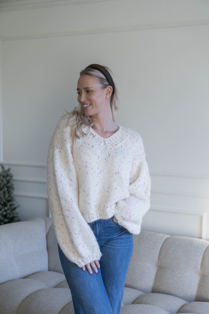Kort, trendig, V-ringad tröja med lös passform – stickas i dubbelt garn med påsydda ärmar utan maskinsömmar.