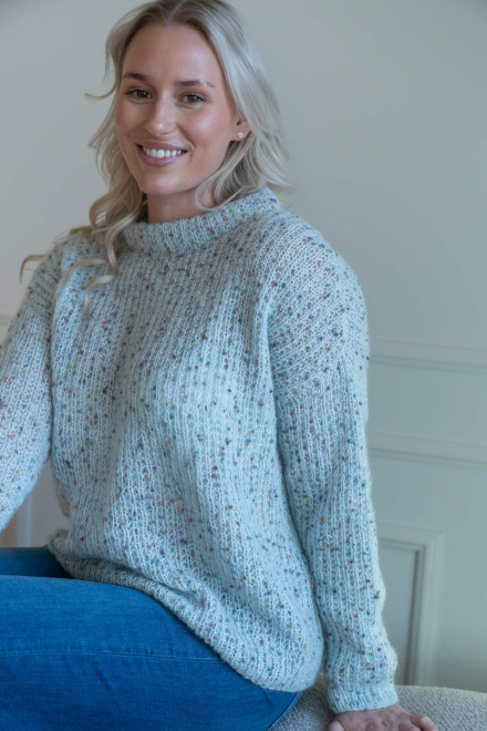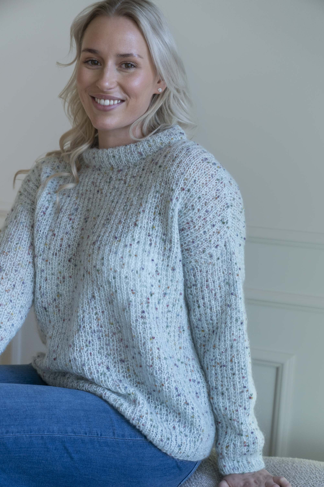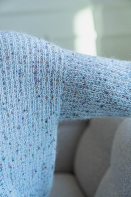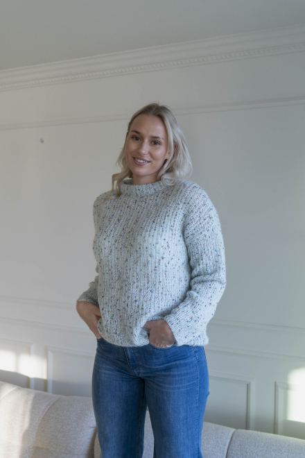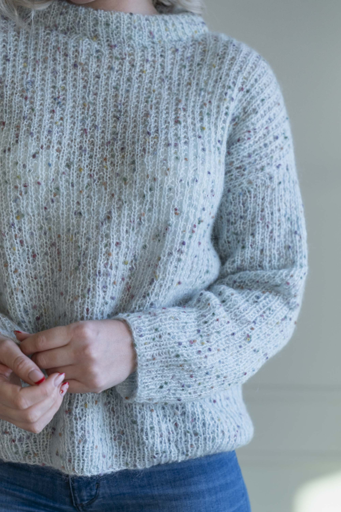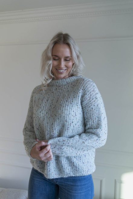 Oversized modell, stickad i ribbmönster med påstickade ärmar