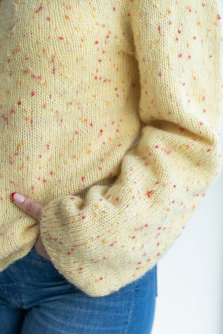 Du kan ändra färg på stickpaketet - välj först den storlek du vill sticka så visas färgvalen nedanför. OBS! Stickmönstret levereras alltid i stickpaketets originalfärg: smörblomma