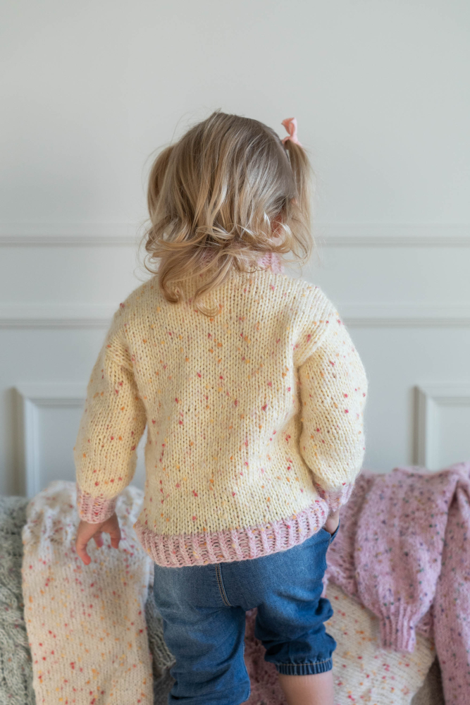 Alla våra stickpaket innehåller stickmönster och total garnåtgång för önskad storlek förutsatt att angivna mått och stickfasthet följs. Stickor, knappar och annat tillbehör köps separat.