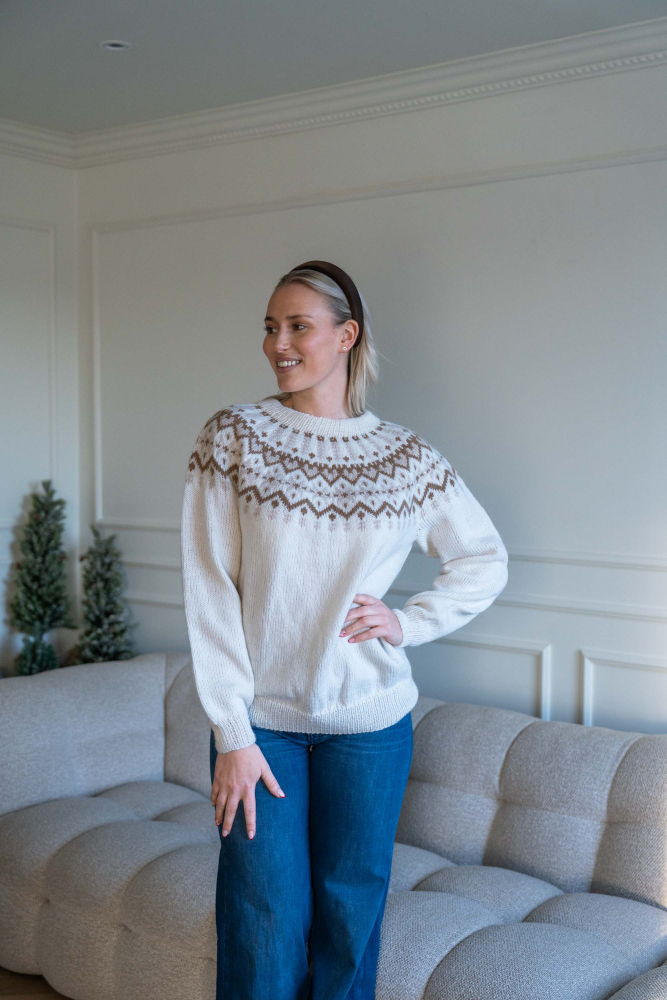 Tröja med runt ok som stickas nerifrån och upp.