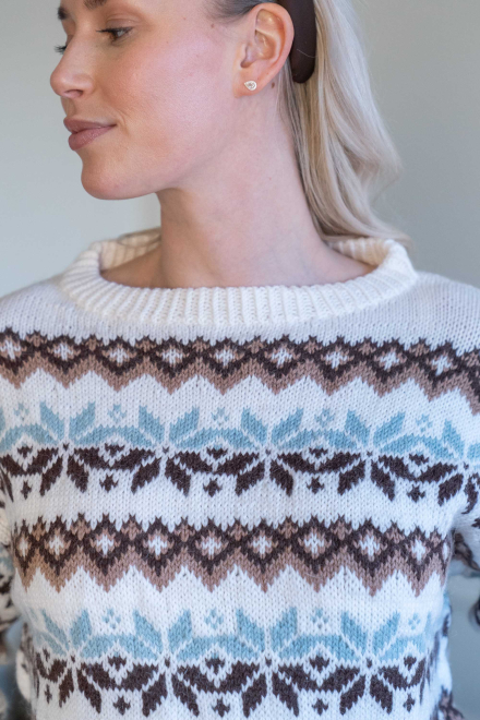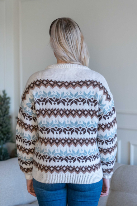 Rymlig, helmönstrad tröja med sluttande axlar och påsydda ärmar.