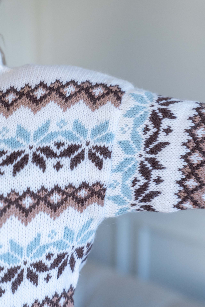 Du kan ändra färg på stickpaketet - välj först den storlek du vill sticka så visas färgvalen nedanför. OBS! Stickmönstret levereras alltid i stickpaketets originalfärg: vit, mörkbrun, mocka mousse och turmalin