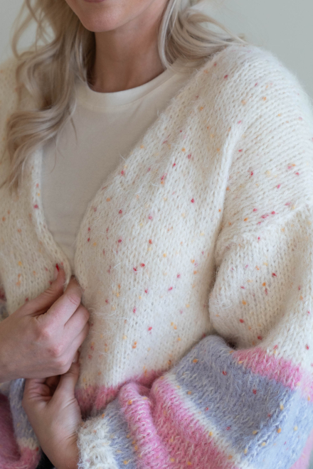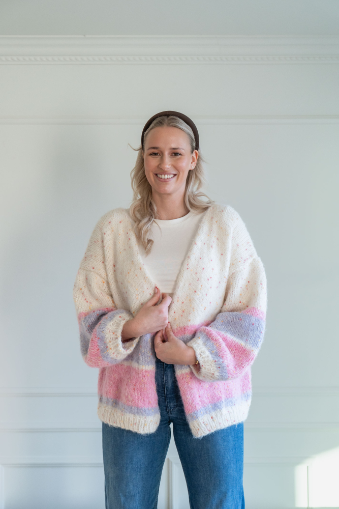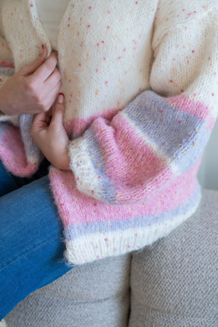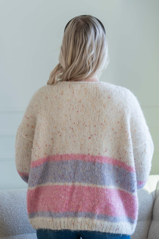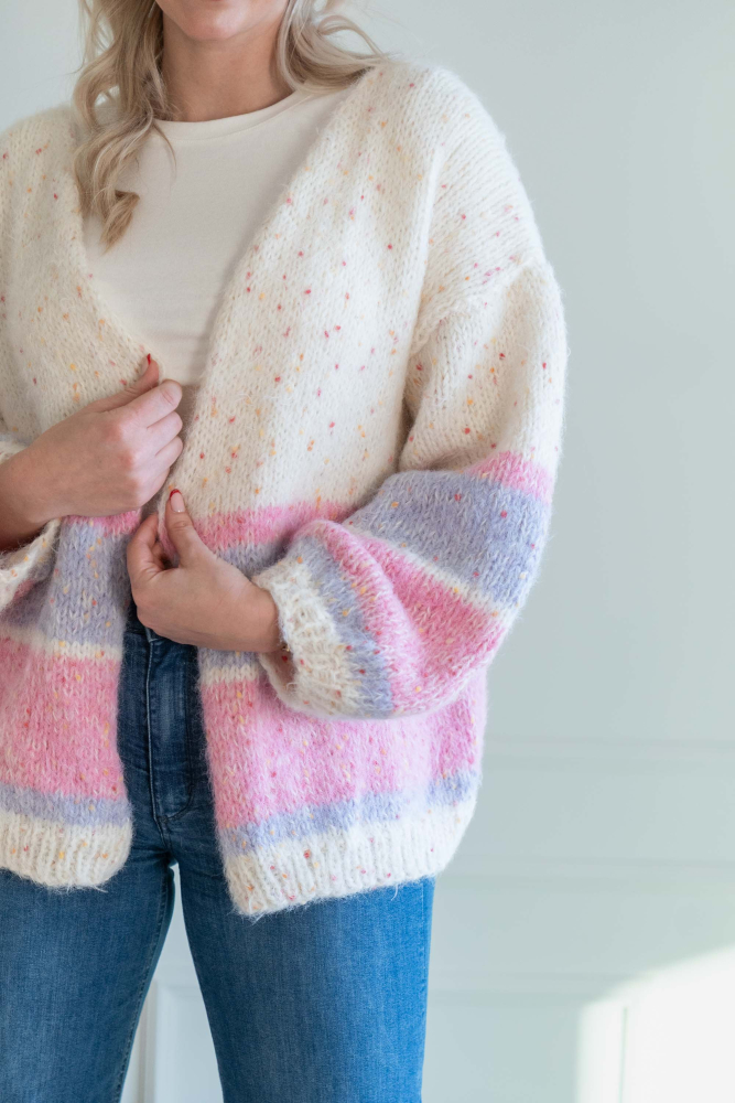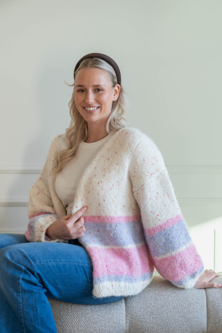 Enkel, slätstickad kofta med lös passform och ränder.