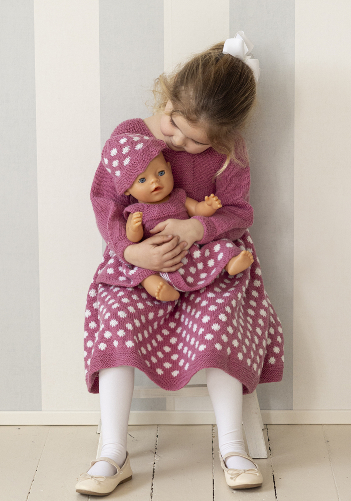 Du kan ändra färg på stickpaketet - välj först den storlek du vill sticka så visas färgvalen nedanför. OBS! Stickmönstret levereras alltid i stickpaketets originalfärger: rosa och vit