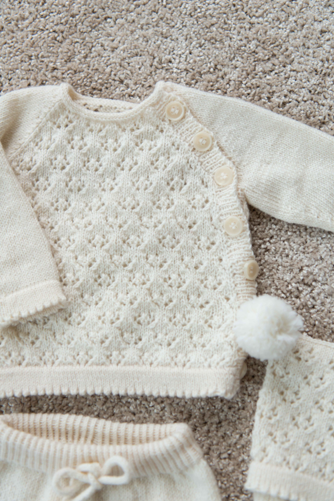 Alla våra stickpaket innehåller stickmönster och total garnåtgång för önskad storlek förutsatt att angivna mått och stickfasthet följs. Stickor, knappar och annat tillbehör köps separat.
