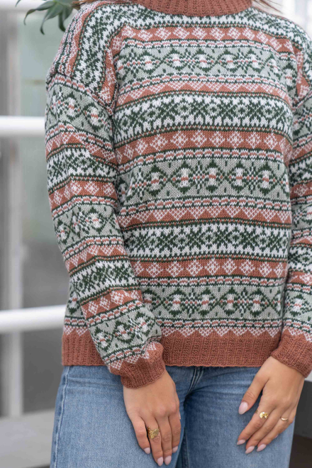 Du kan ändra färg på stickpaketet - välj först den storlek du vill sticka så visas färgvalen nedanför. OBS! Stickmönstret levereras alltid i stickpaketets originalfärger: mocka mousse, natur, mörk oliv och mineralgrå