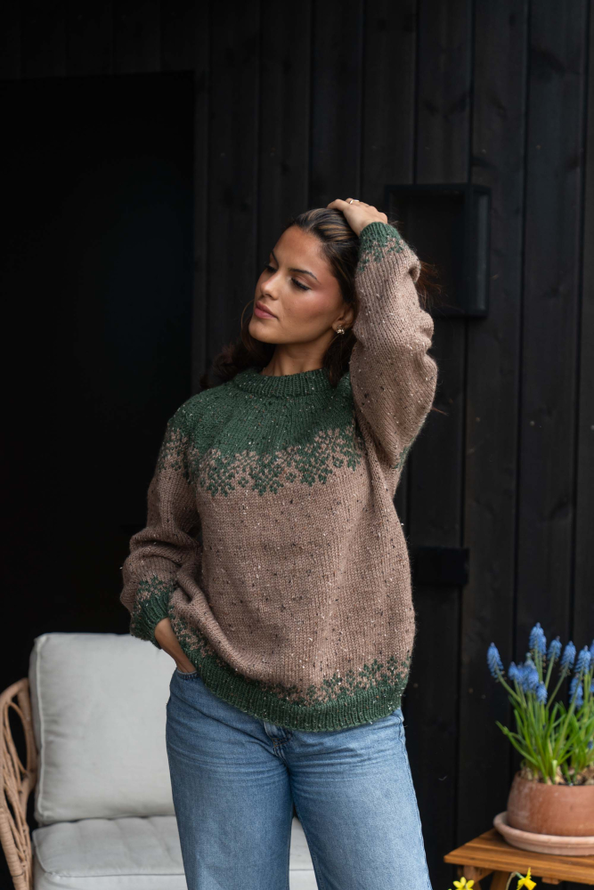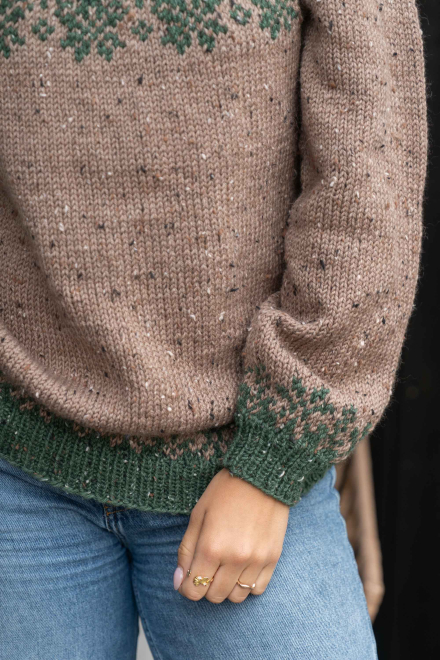 Du kan ändra färg på stickpaketet - välj först den storlek du vill sticka så visas färgvalen nedanför. OBS! Stickmönstret levereras alltid i stickpaketets originalfärger: beige och tallgrön
