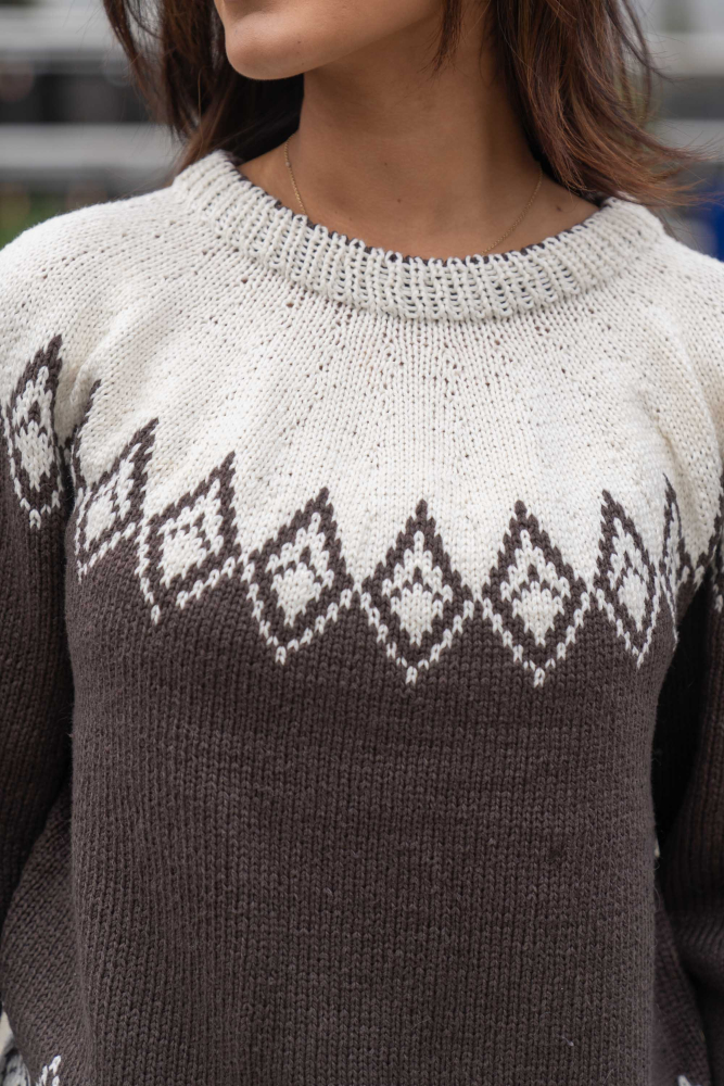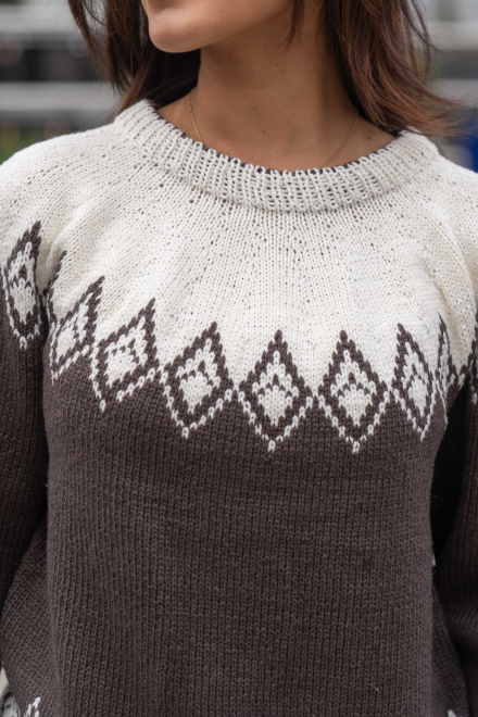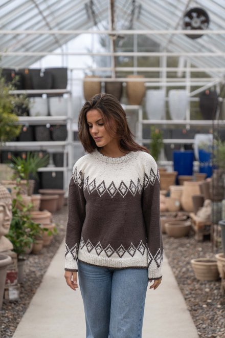 Du kan ändra färg på stickpaketet - välj först den storlek du vill sticka så visas färgvalen nedanför. OBS! Stickmönstret levereras alltid i stickpaketets originalfärger: brun och natur