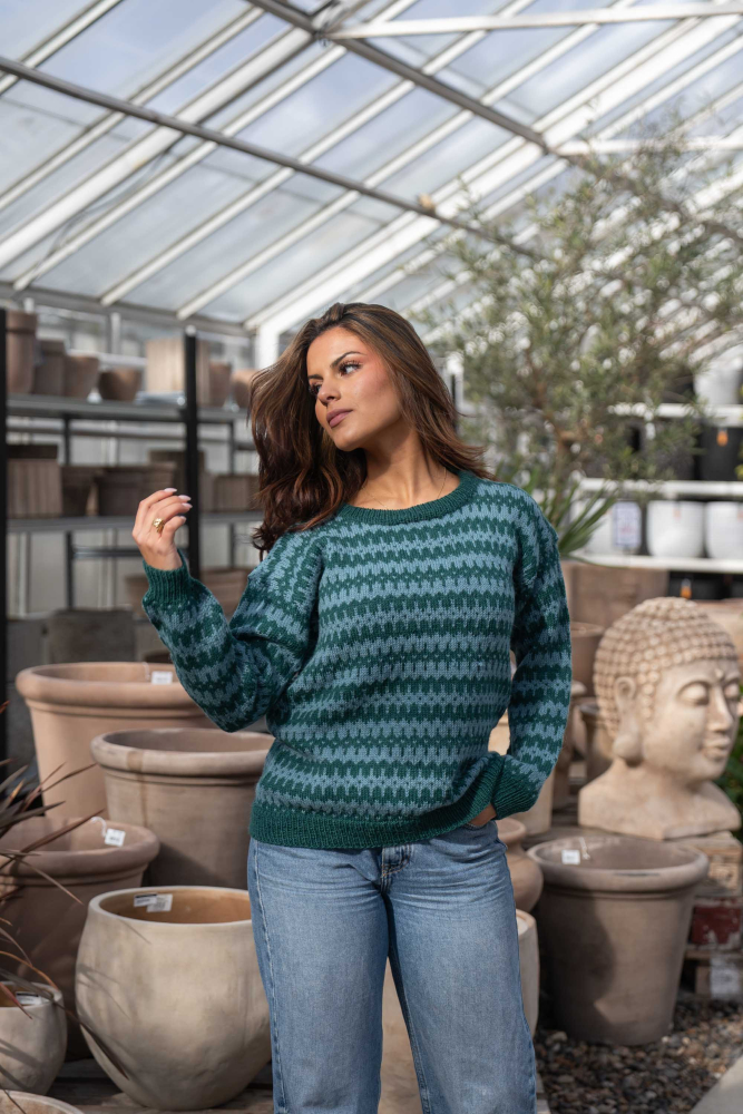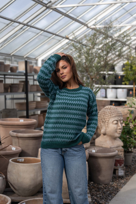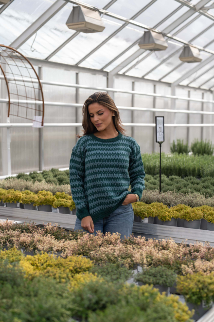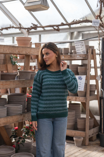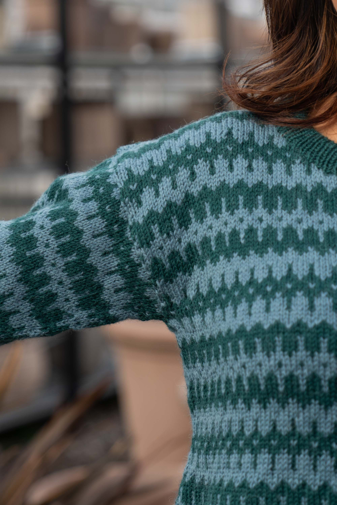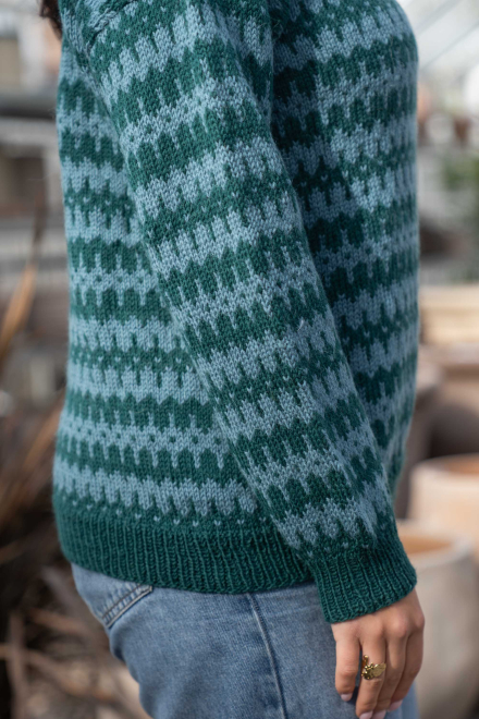 Du kan ändra färg på stickpaketet - välj först den storlek du vill sticka så visas färgvalen nedanför. OBS! Stickmönstret levereras alltid i stickpaketets originalfärger: mörk sjögrön och ljus sjögrön