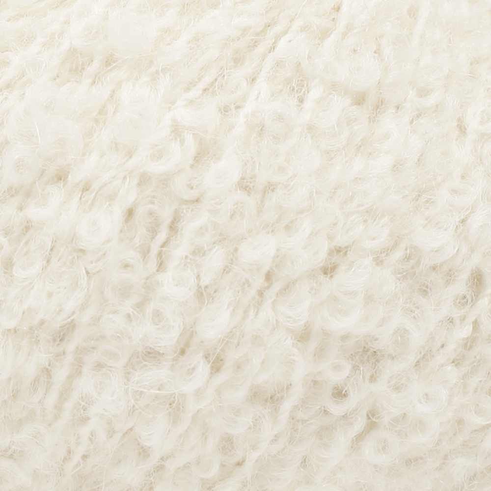 DROPS Alpaca Bouclé är ett mjukt och vackert garn spunnet i superfin alpacka. Fibrerna i garnet är obehandlade, vilket innebär att de endast är tvättade och inte har genomgått någon kemisk behandling före färgning. Detta framhäver fibrernas naturliga egenskaper samtidigt som det ger en bättre form och textur. "Bouclé" är franska för loop och syftar på alla små öglor av ren alpacka som formar nystanet. Bindtråden är en blandning av ull och nylon och gör garnet extra starkt. Garnet är spunnet av 2 trådar och kombinationen alpacka och bouclé ger ett väldigt mjukt garn med utmärkt prestanda och fantastisk effekt. Plagg stickade i DROPS Alpaca Bouclé är lätta och luftiga. DROPS Alpaca Bouclé består av mixade färger förutom de enfärgade. Mix-färgerna framställs genom att karda ihop färgerna innan garnet spinnes.