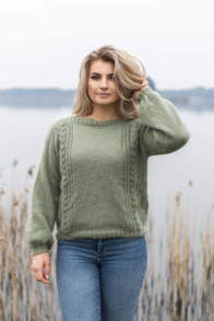 Ljuvlig slätstickad tröja med fint mönster. Tröjan stickas runt på rundsticka. Denna stickbeskrivning kräver montering med symaskin.