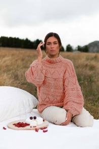 Lättstickad oversized tröja med slits. Stickas med dubbelt garn.
