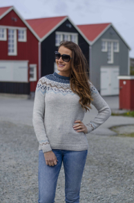 Slätstickning, rät, avig, mönster med flera färger. Koftan stickas runt, nerifrån och upp, klipp upp till framkant och ärmhål. Ärmarna stickas separat och monteras på. Svårighetsgrad: Erfaren